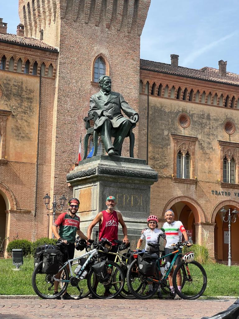 Desviamos la ruta hasta Fidenza, a unos 30 km de la EuroVelo 8, donde participamos en una charla pública para dar a conocer Velorecicla y el Velotour Sostenible, fomentando la movilidad activa, la inclusión y la cultura cicloviajera como herramientas de transformación social.