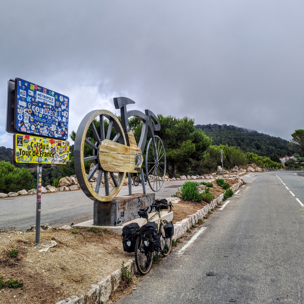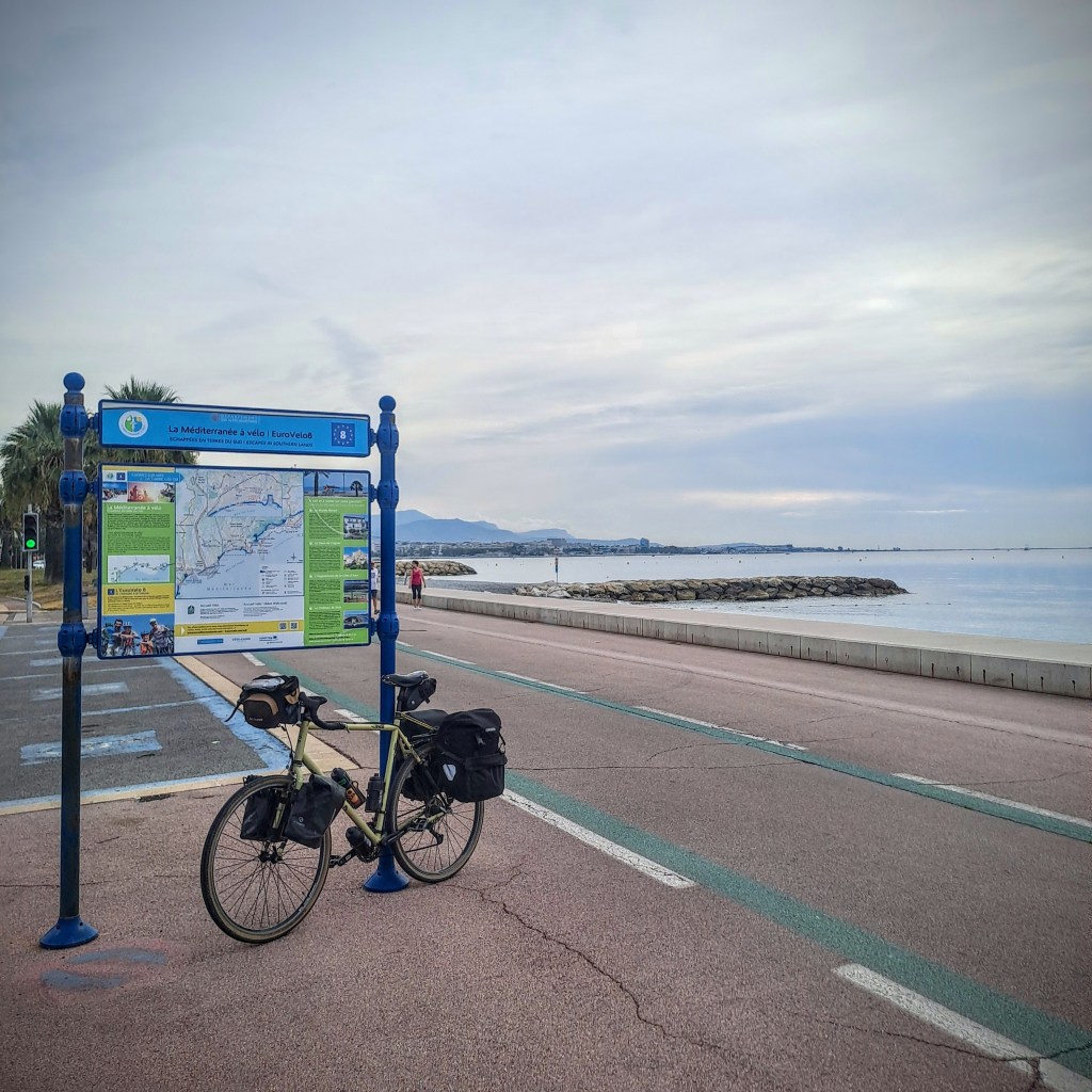 Al salir de Niza, algunos cruces carecen de señalización, aunque la ruta resulta intuitiva por falta de alternativas. Lo más complicado llega en la subida al Col d’Eze: pendientes largas y fuertes que superan las normativas EuroVelo, carretera estrecha, muy traficada y sin arcén en varios tramos.